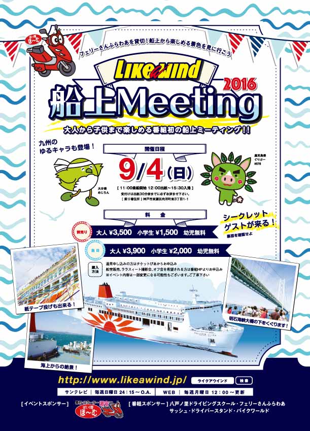 明日9/4(日)に予定されているLike a wind 船上ミーティングですが